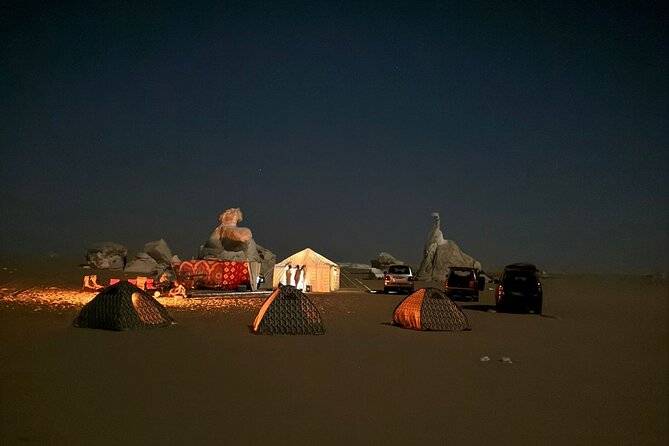 Note: At night temperatures can drop suddenly in the White Desert, so a proper jacket would be necessary to spend the night comfortably- But don't worry we provide all camping equipment like sleeping bags, tents, and mattresses.